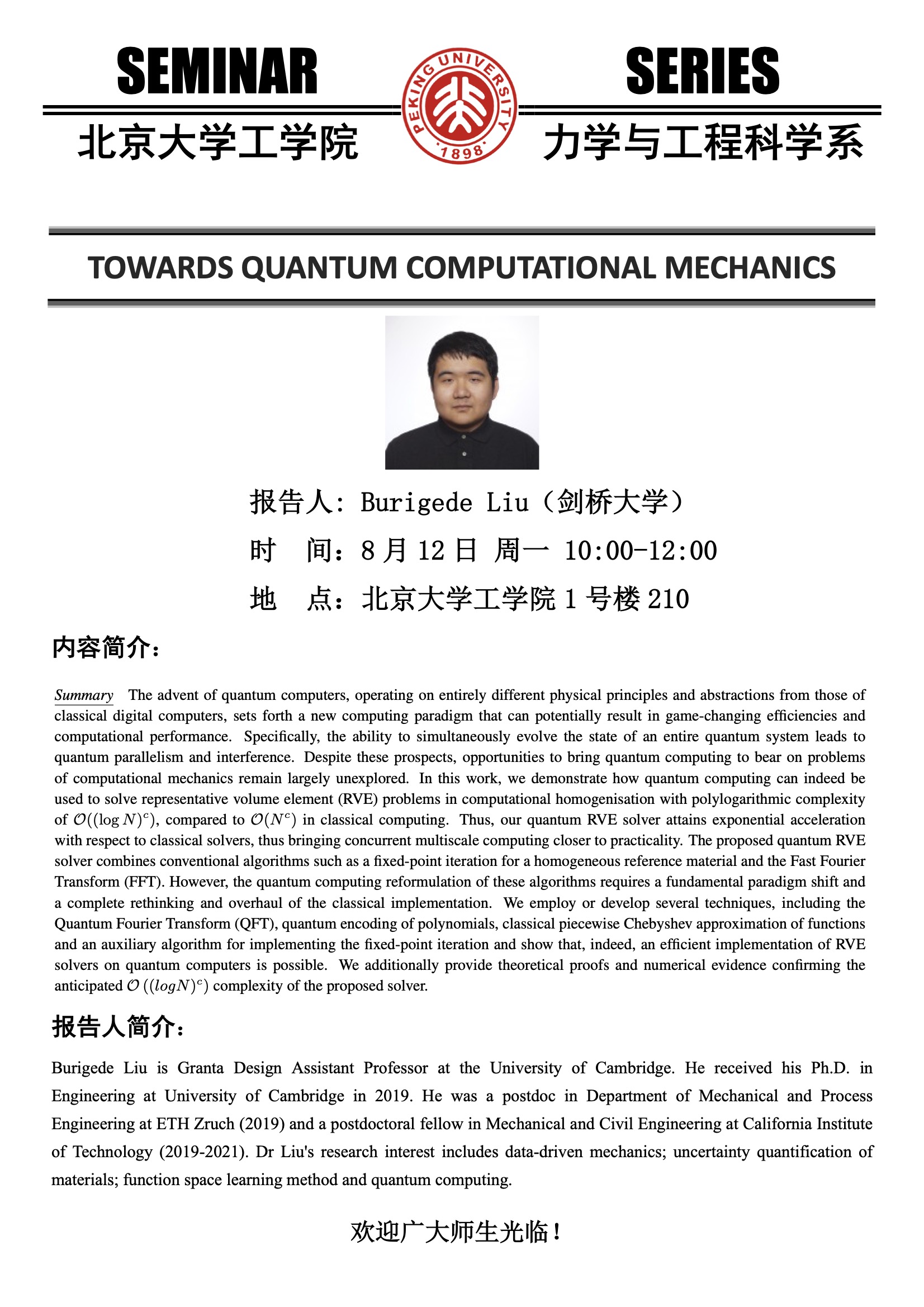 力学系学术报告【8.12 Burigede Liu】:TOWARDS QUANTUM COMPUTATIONAL MECHANICS
