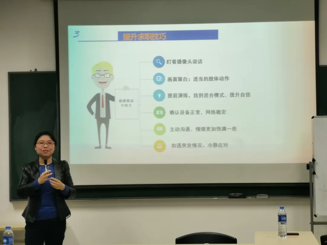 接下来,王若飞老师为同学们解读就业政策,围绕基本概念、户口指标和毕业生就业时间轴三方面讲解,重点介绍了毕业去向填报和签订就业协议的注意事项。