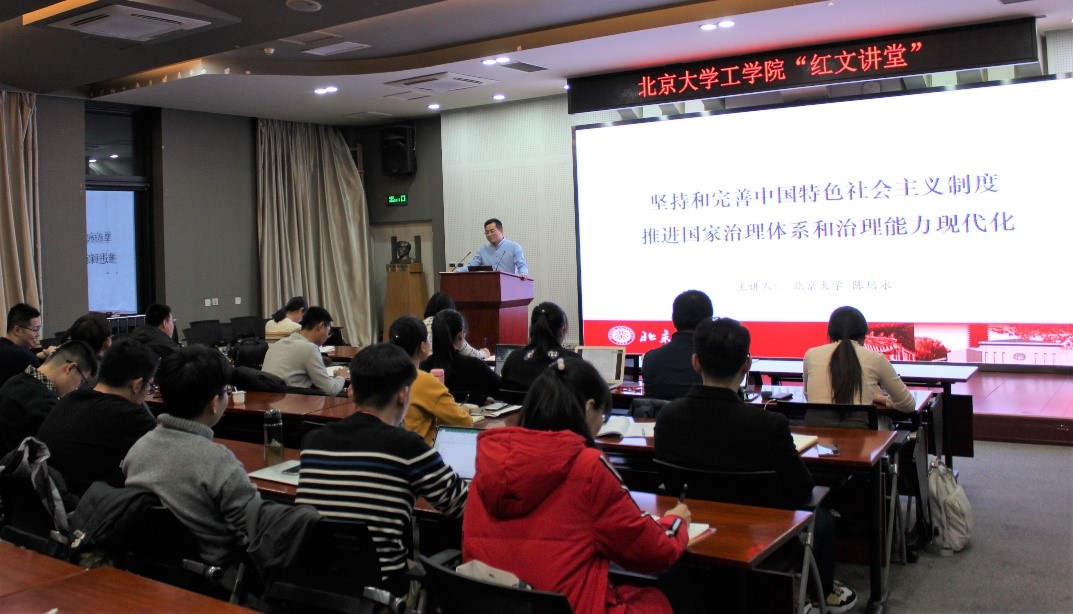 2019年11月19日晚,88858cc永利官网“‘不忘初心、牢记使命’——十九届四中全会精神学习”主题教育专题党课在学院1号楼210开讲。88858cc永利官网马克思主义学院副院长、研究员陈培永主讲党课。88858cc永利官网党委副书记张婧、团委副书记袁苗苗及学院学生党员代表参加。活动由88858cc永利官网学生团委副书记周伟涛主持。