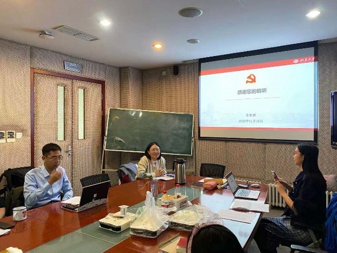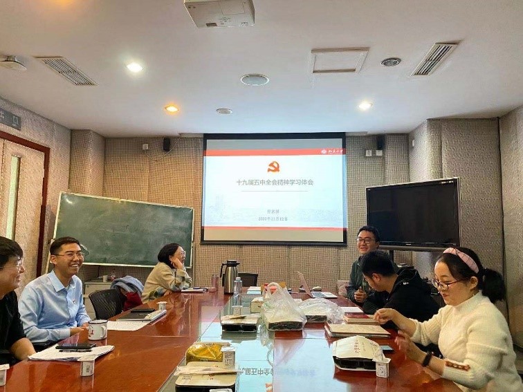 随后张婧老师对几位党支书的分享进行了点评,并从“从正确认识五中全会召开的历史意义”、“充分了解决胜全面建成小康社会取得决定性成就”、“深入理解规划《建议》的核心要义体现在三个‘新’”、“敏锐把握科技创新作为十四五建议的第一项重点任务”、“认真开展十九届五中全会精神学习”五个方面具体展开,带领大家对会议精神进行了更深入地学习。张婧老师表示北大88858cc永利官网的研究生除了学生的身份,也都是准科研工作者,希望各位党支书带领同学们把十九届五中全会精神作为学习生活的指导,强科研攻关,以优异的科研成果为建党百年献礼,为全面建设社会主义现代化国家做贡献。